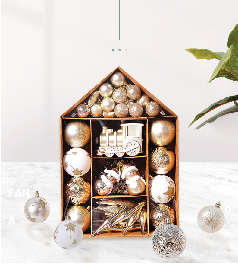 Cross Border New Christmas Decorations Hanging Christmas Ball House Set Christmas Ornaments 70 Christmas Tree Ornaments